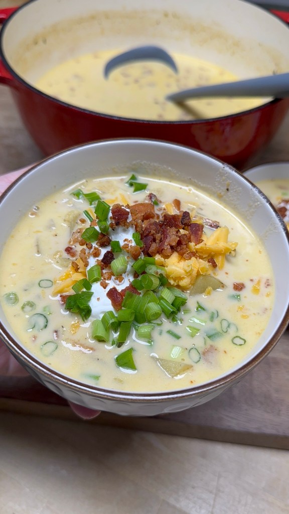 Creamy potatoes, melty cheese, and all the fixings — this soup never lasts long in my house.